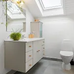 La Villa Ha256-Hals-Nordvestvej-19 dispone de un cuarto de baño con una ducha y una lavadora.